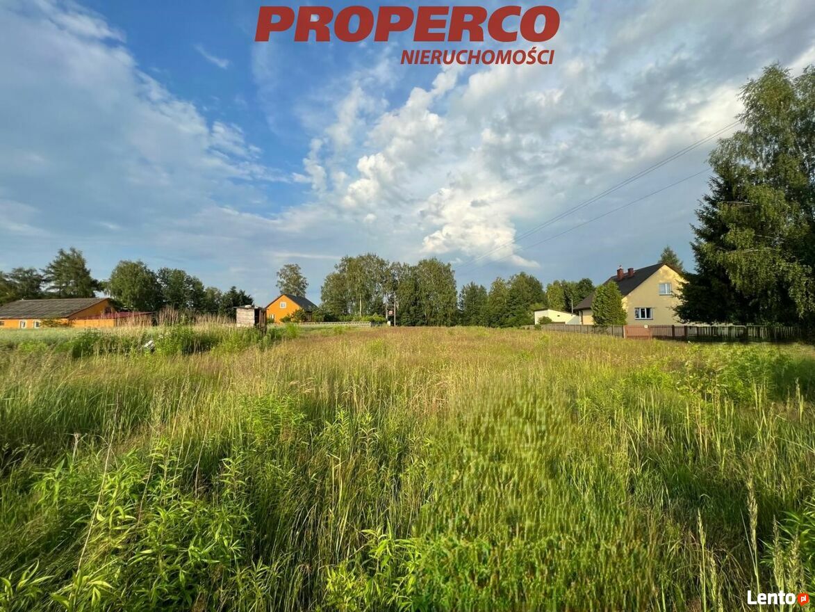 For sale: a plot of land with an area of 1278 m², located in Brynica, Piekoszów municipality. The property is situated in the second line from the asphalt road, accessible via an internal road with a width of 4 meters.